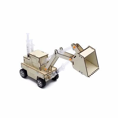 This excavator uses four water injectors to control the telescopic height of the excavator and the extension of the bucket respectively by simulating hydraulic pressure, and simulates the movement of the mechanical arm. This product mainly uses hydraulic pressure to control the swing arm to complete the excavation work, and through this product, children can understand the mechanical operation and basic transmission principle of hydraulic pressure.