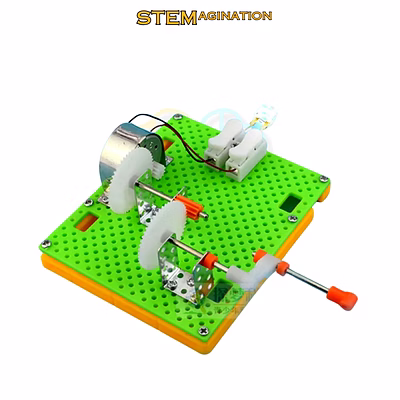 This project demonstrates how mechanical energy can be converted into electrical and light energy. You'll drive the gears by turning the handle, which will spin the motor. The motor will then generate electricity, powering an LED light.